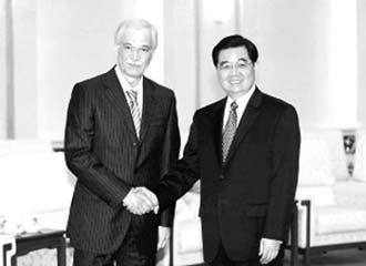 5月15日,国家主席胡锦涛在人民大会堂会见了格雷兹洛夫。