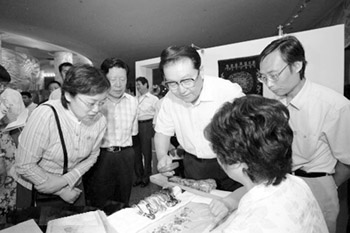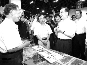 中共中央政治局常委、国务院总理温家宝,中共中央政治局常委李长春当天分别来到中华世纪坛,观看正在这里举行的中国非物质文化遗产专题展。