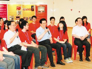 下午4时13分,胡锦涛来到这里,同80多位曾参加“京港同心庆回归迎奥运”访京团的香港青少年一起,围绕“认识祖国”这一主题畅谈感想。