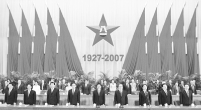 8月1日, 中共中央、国务院和中央军委在人民大会堂隆重举行庆祝中国人民解放军建军80周年暨全军英雄模范代表大会。中共中央总书记、国家主席、中央军委主席胡锦涛在会上发表重要讲话(讲话全文另载)。