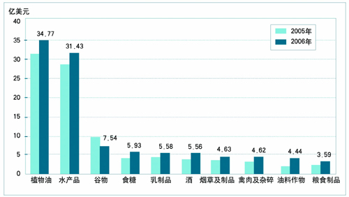 图82006年中国进口食品贸易额前10位