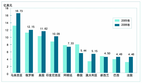 图72006年中国进口食品贸易额列前10位