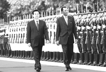 (9月20日,胡锦涛在北京人民大会堂东门外广场举行仪式,欢迎代比访华。新华社记者刘卫兵摄)