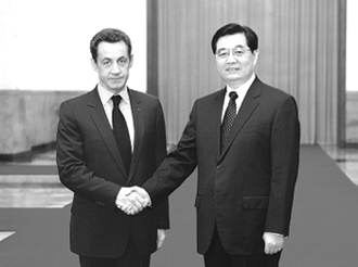 11月26日,胡锦涛在人民大会堂与萨科齐举行会谈。双方就双边关系和共同关心的重大国际及地区问题全面、深入地交换了意见,达成广泛共识,取得了积极成果。