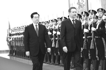 12月6日,全国人大常委会委员长吴邦国、国务院总理温家宝分别会见了茨尔文科夫斯基。