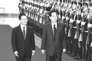 12月10日,温家宝在人民大会堂与韩德洙举行会谈,双方就进一步深化中韩全面合作伙伴关系达成广泛共识。