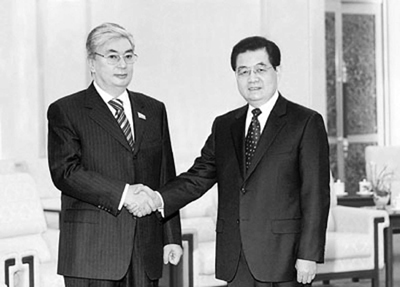 1月24日,国家主席胡锦涛在人民大会堂会见了托卡耶夫。
