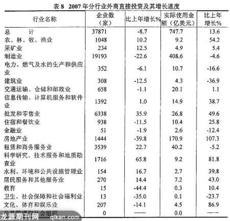 全年非金融领域新批外商直接投资企业37871家,比上年减少8.7%。实际使用外商直接投资金额748亿美元,增长13.6%。其中,制造业占54.7%;房地产业占22.9%;租赁和商务服务业占5.4%;批发和零售业占3.6%;交通运输、仓储和邮政业占2.7%。