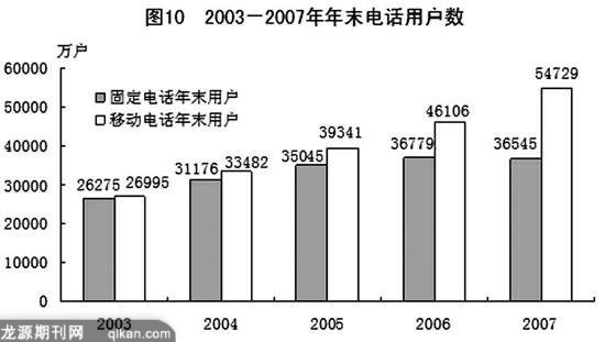 全年完成邮电业务总量19361亿元,比上年增长26.4%。其中,邮政业务总量815亿元,增长11.8%;电信业务总量18545亿元,增长27.1%。全年新增局用交换机836万门,总容量达到5.1亿门。固定电话用户年末达到36545万户。其中,城市电话用户24859万户,农村电话用户11686万户。新增移动电话用户8623万户,年末达到54729万户。年末全国固定及移动电话用户总数达到91273万户,比上年末增加8389万户。电话普及率达到69部/百人。互联网上网人数2.1亿人,宽带上网人数1.63亿人。