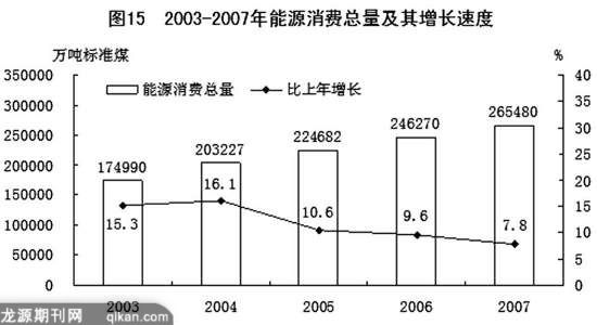 初步测算,全年能源消费总量26.5亿吨标准煤,比上年增长7.8%。煤炭消费量25.8亿吨,增长7.9%;原油消费量3.4亿吨,增长6.3%;天然气消费量673亿立方米,增长19.9%;电力消费量32632亿千瓦小时,增长14.1%。主要原材料消费中,钢材5.2亿吨,增长17.4%;精炼铜399万吨,增长13.0%;电解铝1112万吨,增长27.6%;乙烯1048万吨,增长11.4%;水泥13.3亿吨,增长10.5%。