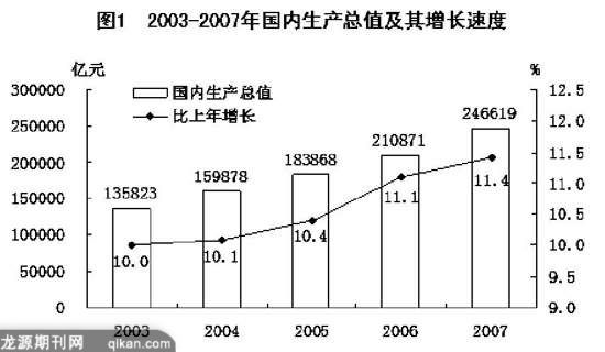 4月10日,国家统计局发布公告,将2007年GDP增长率上调0.5个百分点。公告称,经初步核实,2007年GDP现价总量为249530亿元,比初步核算数增加了2911亿元,按不变价格计算,比上年增长11.9%,比最初公布的11.4%的增长速度提高了0.5个百分点。
