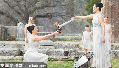 在奥林匹亚遗址入口处,中国游泳运动员罗雪娟用尼克拉泽斯的火炬引燃自己手中的火炬,跑向奥林匹亚市政厅。罗雪娟是北京奥运全球火炬传递活动中的第一个中国人,之后是邓亚萍,紧接着是中国驻希腊大使罗林泉。