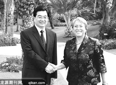 4月13日,胡锦涛在三亚市同巴切莱特举行会谈。两国元首一致同意,进一步采取措施,加强合作,把中智全面合作伙伴关系推向更高水平。
