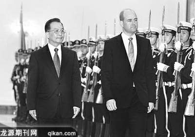 温家宝希望两国充分利用双边自贸协定提供的有利条件,促进矿业、农业等传统领域合作取得更多成果,积极探索新的合作领域和合作方式,更好地实现互利共赢。