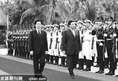 4月11日,胡锦涛在三亚市同穆沙拉夫举行会谈。双方同意共同努力,巩固两国全天候友谊,深化战略伙伴关系。