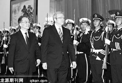 陆克文重申,澳大利亚愿成为中国负责任的合作伙伴和长期稳定的能源资源供应国。陆克文说,澳大利亚视中国为澳大利亚长期的伙伴,我们的目标是使两国业已存在的良好关系成为更强大、更广泛、更深入的双边关系,共同推动两国各领域合作向前发展,共同应对包括气候变化、可持续发展在内的全球性和区域性问题。澳方把能源资源合作、工业品贸易、服务业交流作为澳中经贸合作三大支柱,期待同中方建立更强大的经济关系。澳方也希望不断扩大两国议会、政党、人员往来,加强体育、文化等领域交流。