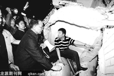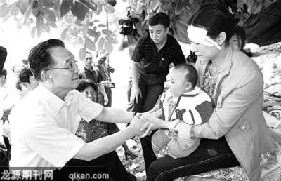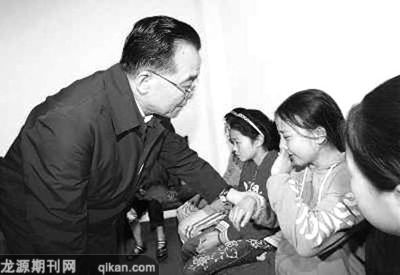 温家宝弯下腰去,双手搂着两个孩子,轻声在他们耳边说:“别害怕。”