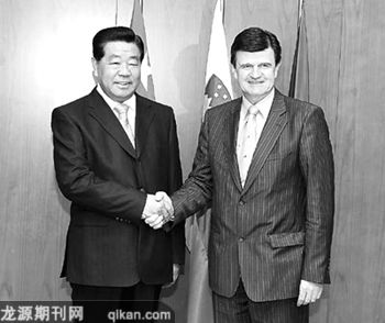 关于双边经贸合作,贾庆林表示,今后双方应继续挖掘潜力,加强合作:第一,充分发挥政府间经贸混委会、商会的宏观指导作用,为双方企业界的合作提供法律保障、政策咨询和信息服务。第二,积极开展在能源、环保、科技创新、港口运输等重点领域的合作,推动双方企业界增加直接接触,开展多形式、多渠道的合作。第三,调动地方政府的积极性,鼓励和支持开展友好省市交往,加强地方经贸合作。
