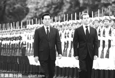 5月23日,胡锦涛在人民大会堂同梅德韦杰夫举行会谈。两国元首高度评价中俄战略协作伙伴关系的建立和发展,一致同意继往开来,共同努力,推动中俄战略协作伙伴关系更好地向前发展。