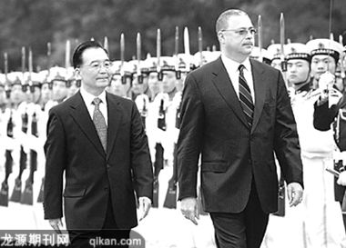 5月6日,温家宝在人民大会堂与汤普森举行会谈。
