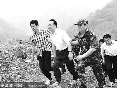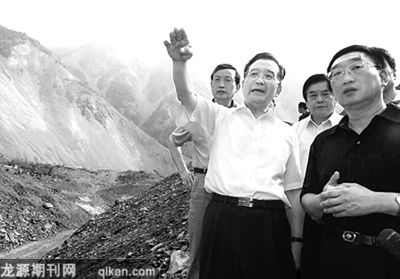 温家宝还来到导流明渠的出水口察看。风很大,不时传来碎石从山上滚落的声音……