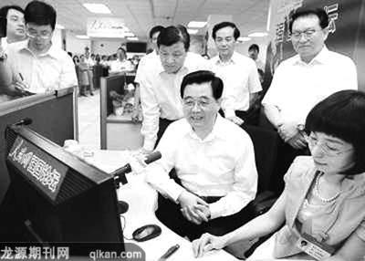 胡锦涛十分关心互联网的发展,他特地来到人民日报社主办的人民网,看望网站工作人员。经过11年的发展,人民网已成为最大的中文和多语种新闻网站之一,每天页面访问量达1亿人次左右。