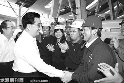 列车运行途中,胡锦涛同工程负责人就高速铁路设备国产化等问题深入交谈起来。了解到高速铁路列车国产化率已经达到85%,总书记勉励他们在高速铁路关键技术、关键部件国产化方面继续取得新的进展。