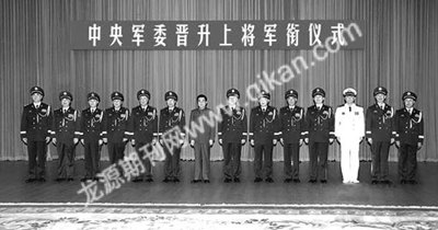 这次晋升上将军衔的高级军官是:总政治部副主任刘振起、沈阳军区政治委员黄献中、济南军区司令员范长龙。