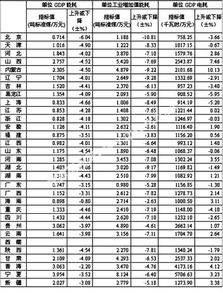 5.根据农业普查后全国GDP修正结果计算,2005年、2006年全国单位GDP能耗分别为1.226吨标准煤/万元、1.204吨标准煤/万元,2006年比2005年降低1.79%。2007年全国单位GDP能耗为1.160吨标准煤/万元,比2006年降低3.66%。