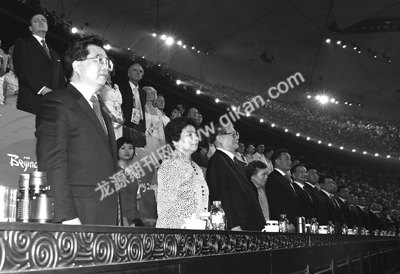 江泽民、吴邦国、温家宝、贾庆林、李长春、习近平、李克强、贺国强、周永康等党和国家领导人,国际奥委会主席罗格、终身名誉主席萨马兰奇,以及来自世界各地的领导人和贵宾出席开幕式,同全场观众共同见证这一激动人心的历史时刻。