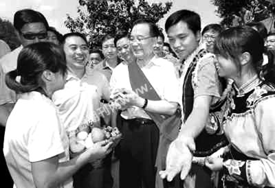 他对26岁的羌族姑娘王丹说,在这场地震中,北川的伤痛是巨大的,而北川人民又是坚强的、感恩的。地震夺去了北川县城一半的生命,但是活着的人又站起来了,充满希望地工作着、学习着。一定要再建一个新北川,告慰遇难的同胞。