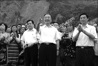 第二件事情,还是基础设施。基础设施最难的是路。因为修路不仅是施工,而且要治山治水;不仅要修通,而且要保障通畅。这件事十分困难。我还要说都江堰到汶川的公路,地震第一天我们就急着要修通这条路。专家查勘以后曾经判断没有一到两年的时间这条路修不通,到处都是滚石、塌方,桥梁倒塌,涵洞变形。我没有想到,就用100多天的时间,这条路修通了。今天,我们就是坐着汽车,沿着这条公路来到这里。但是保通,难度还很大。还有山区的另外几条公路需要抢修,昨天晚上总指挥部开会确定,在年底以前争取能够通车,哪怕从便道开始、从轻载开始,逐步建成规范的路。