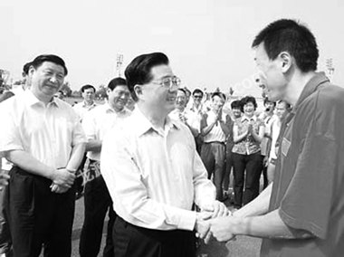 8月20日,中共中央总书记、国家主席、中央军委主席胡锦涛和中共中央政治局常委、中央书记处书记、国家副主席习近平实地考察了中国体育代表团备战北京残奥会和北京市社区残疾人服务情况。
