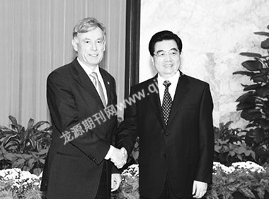 9月6日,国家主席胡锦涛在人民大会堂会见前来出席北京残奥会开幕式的伊朗总统艾哈迈迪-内贾德。