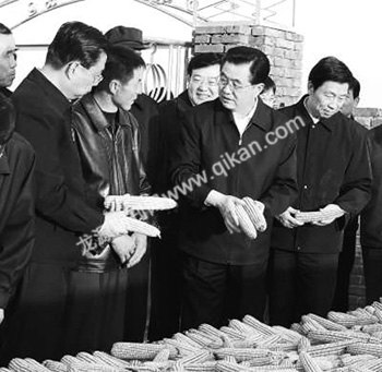 胡锦涛脸上露出了笑容,他说:“民以食为天。我们国家有13亿人口,粮食问题始终是头等大事。前不久召开的党的十七届三中全会出台了一系列扶持粮食生产的政策措施。今后,国家给种粮农民的优惠会越来越多,粮食最低收购价会稳步提高,种粮补贴会逐步增加,真正让农民兄弟从种粮中得到更大的收益。