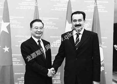 当天,哈萨克斯坦总统纳扎尔巴耶夫在阿斯塔纳会见了温家宝。