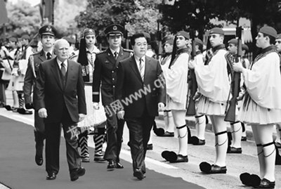 当天,胡锦涛在雅典同希腊总统帕普利亚斯举行会谈。