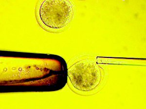 为了解决这个难题,科学家想出了不少变通的办法。比如,可以通过某种手段刺激体细胞,使它转变成干细胞,可惜这个办法还未成熟,前景不好预测。还有一种比较容易的办法,就是用廉价的牛或者兔的卵子作为人卵子的替代品,进行“胞质杂交”,获得完全具有人类性状的干细胞胚胎。