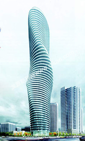 早在2005年底的一天,多伦多天气晴朗,万里无云。马岩松站在加拿大米西索加市的空旷土地上,湛蓝的天空和风中的泥土气息让他感到心旷神怡。几个月后马岩松和他的MAD便以一个夸张流线造型的设计赢得了世界的眼光。设计方案用连续不同的角度的水平阳台环绕整栋建筑形成曲线体,这样一来传统高层建筑中用来强调高度的垂直线条被取消。大楼开盘后一天内被卖光,人们趋之若鹜以至于顾不上关心购房的楼层和朝向。这幢大楼被报纸评论称为“玛丽莲·梦露大厦”。