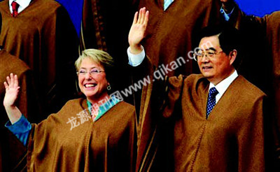 胡锦涛主席在利马峰会上发表题为《坚持开放合作寻求互利共赢》的讲话,呼吁凝聚共识,推动多边贸易体制健康发展;强调承担责任,共同应对气候变化;希望交流合作,合力抗击自然灾害;主张规范引导,强化企业社会责任;倡导协调行动,确保世界粮食安全和能源安全。这五点主张,无不包含着“合”与“协”的内容,无不体现着“合”与“协”的精神。