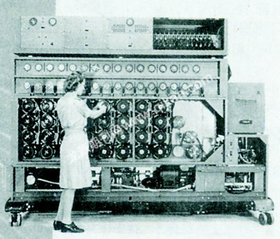 1946年,战火催生了另一个奇迹。当时的美国军方为计算炮弹弹道,要求宾州大学设计以真空管取代继电器的电子数字积分计算机(ENIAC)。宾州大学最后交出了鼓舞人心的“作品”,新机器每秒可从事5000次的加法运算,3秒钟即能完成炮弹弹道计算。这是广泛范围认可的世界上第一台电子计算机,它对密码的处理速度是手工计算的20万倍、继电器计算机的1000倍。不足的是,这家伙不仅长得不好看——其外观缠满电表、电线和指示灯,而且吃电太凶,每一开机,整个费城西区的电灯都要暗一暗。