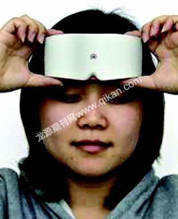 盲人将Touch Sight相机放在前额,相机背面有一个带盲点的“显示”薄片,会拍摄到镜头所指向东西的照片。