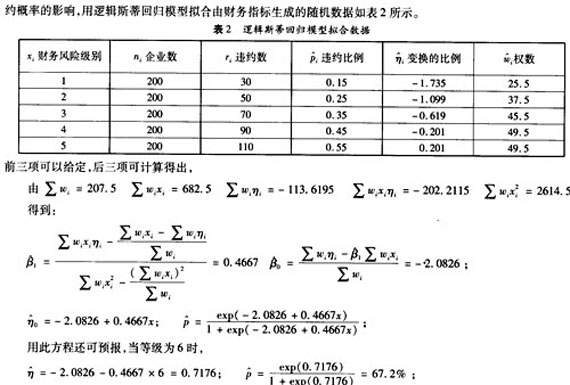 另外,逻辑斯蒂回归模型运用进行参数估计,模型的实用性远远超出财务状况透明的上市公司,并且模型还可进行预报、控制等,通过上例可以看出预测结果也是合理的。数学模型本身是多元回归问题,在收集因素时,把所有影响因素通过权数包罗进来,建立违约概率与影响因素之间的某种依赖关系。分析内在规律,运用逻辑斯蒂回归模型进行参数估计,可以克服默顿模型和KMV的信用监测模型主要适合于对上市公司违约概率估算的局限性,逻辑斯蒂回归模型在我国目前银行业针对不同交易对手实用性更广。