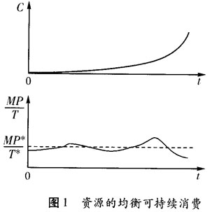 可持续发展要求对资源进行均衡的可持续消费。从图1中我们可以看到,按照可持续发展的要求,资源消费应该存在着一个与社会生产力发展水平相匹配的资源消费量,最优的资源消费水平由MP