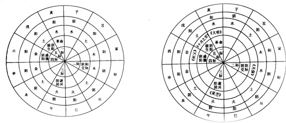 为阳水,以一阳起群阴之中。君子所以经纶草昧、开国承家,故亥为一际也。 自寅至酉,正在光明,卯为阴木,午为阴火,酉为阴金,其象暗昧,国家于此当有变改之政。故卯、午、酉各为一际也。 自酉至戌,渐入阴柔,戌为阳土,以一阳陷群阴之内,国家于此必有灾异之应。故戌为一际也。(《齐诗翼氏学》卷一《四始五际名义》)