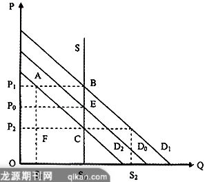 1,假设供给曲线为S,其形状是一条垂直线,此时市场的均衡价格为P