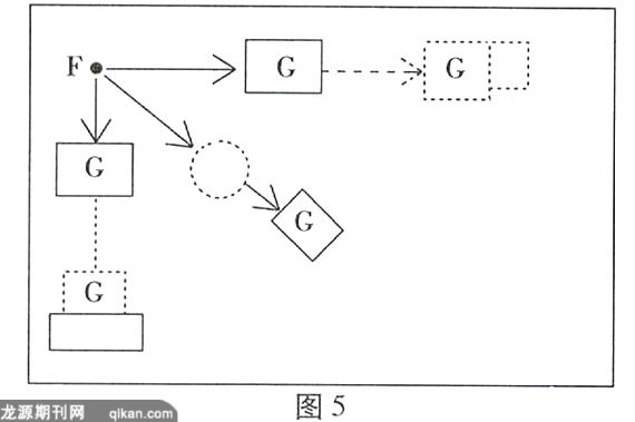 (1)变位。受力者(G)受力后空间位置发生了变化。这里有两种情况:最常见的是受力者(G)受到施力者(F)发出的推力而向远离施力者的位置移动,可用图2.1表示: