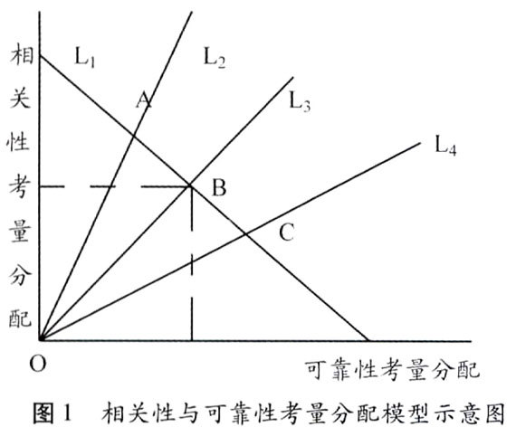 因此,不能用一般经济学意义上妥协折中的均衡模型作为相关性与可靠性关系的分析框架,可靠性与相关性不是一种简单的均衡替代关系,应该在理论和观念上确立相关性与可靠性的考量分配模型,对相关性与可靠性进行务实地酌量。因此,我们可以考虑建立如下考量分配模型(图1),并在规范命题的意义上明确选择。