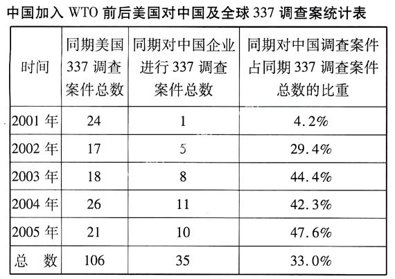 由于美国关税法337条款对我国的影响在近几年才陡然上升,因此理论和实务界对337条款了解较少,将337条款与世贸组织法(主要是TRIPs协议及WTO争端解决机制)进行比较研究者也不多,并且对337条款与世贸组织法是否一致尚未形成普遍认同的理论,肯定说和否定说都存在。但不论认同哪一种观点,都不妨碍我们利用世贸组织成员身份和WTO争端解决机制平台应对337条款。如认为337条款与世贸组织法一致,则可以强调中美同属于世贸组织成员的身份,应共同适用WTO争端解决机制的原则和程序,从而避免美国单方面动用其国内法的337条款。如果认为337条款与世贸组织法不一致,则可以就337条款的合法性问题将美国政府诉至WTO争端解决机构,在WTO争端解决机制这一有力的平台上与其他WTO成员相联合,迫使其对国内法337条款做出与WTO法相一致的修改。我国加入WTO后对此已经有所行动。在《商务部2005国别贸易投资环境报告——美国》中我方明确表示:“中方对美国《1930年关税法》第337条的规定及337调查的实践与WTO有关规则的一致性问题,……表示高度关注。”在2006年世界贸易组织对美国进行第八次贸易政策审议的过程中,共有29个成员提出600多个书面问题,其中我国提出了106个问题,并将美国知识产权立法和保护以及反倾销等贸易救济措施作为审议重点之一。无论从改变中美贸易现状还是从提升我国在世贸组织中的地位而言,这都是应为而且有为之举措。