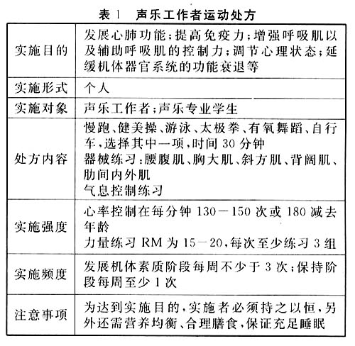 欲通过体育锻炼达到以上各种目的,进而更好地提高声乐工作者的生理健康指标并对其专业技能